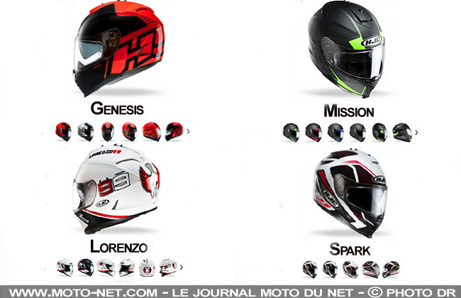Le casque intégral HJC IS-17, l'un des modèles vedettes du constructeur coréen grâce à son look sportif et son rapport prix / équipements avantageux, s'offre de nouvelles décorations (Mission, Spark, Genesis et Lorenzo 99), elles-mêmes déclinées en plusieurs coloris inédits.
