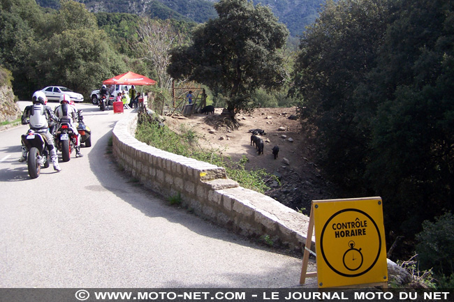 Grand soleil ce samedi matin sur la plage de Porticcio : c'est parti pour le sixième Rallye de Corse ! Ca secoue dans la première partie du parcours routier, les routelettes défoncées de la Corse profonde ne sont pas des plus reposantes, mais la moyenne horaire (descendue à 50 km/h en raison des nombreux villages traversés) est tout à fait faisable en regardant le paysage.