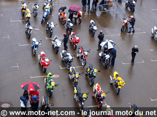 A partir de 12h30, c'est l'arrivée de la première boucle à la Suze : 30 minutes d'assistance avant de remettre les motos en parc fermé pour deux heures de pause. Un break appréciable et apprécié, tant les pilotes sont habitués à enquiller les deux boucles à la suite sur les autres rallyes... Là, ça fait du bien de se poser un peu, surtout que le soleil à l'air de vouloir revenir... Le deuxième tour se disputera-t-il sur le sec ?