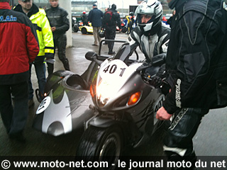 Samedi matin, on est fixé : il pleut ! Une petite liaison nous mène au mythique circuit des 24 Heures pour la première spéciale. Les side-cars partent en premier, mais le retournement d'un des équipages entraîne un léger retard pour les autres concurrents. Le pilote rentre seul au stand, son "passager" ayant été évacué par les secours après avoir été éjecté du side, mais heureusement plus de peur que de mal : juste quelques contusions !