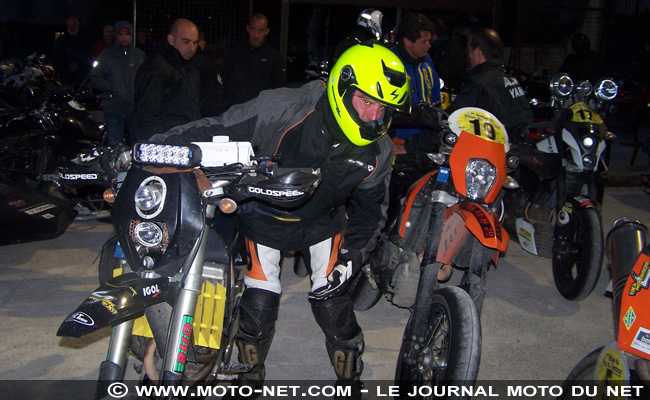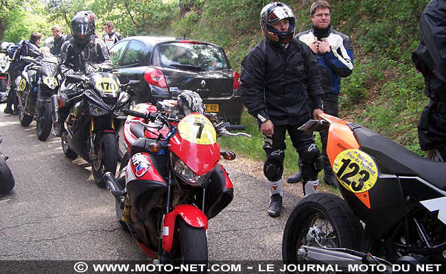 Là, c'est Maxime Mettra qui ouvre le bal aux commandes de sa KTM 950 Supermoto, un millième de seconde devant Manoel Delaval sur sa Honda CB 1000 R. Derrière à plus de trois secondes, Marc Antoine Bozzi place sa Honda 600 Hornet en troisième position. Le premier Mono est Stéphane Ricciarelli sur sa Yamaha 450 WRF, encore une seconde derrière, alors qu'on attendait de meilleurs temps ici de la part des machines typées supermotard !