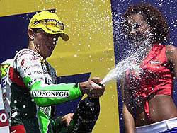 A l’entame de l’avant-dernier tour, la bataille fait rage pour la victoire et pour la 3ème place. En bout de ligne droite, Elias fait le freinage à Poggiali mais élargit et Poggiali lui fait l’intérieur dans le virage, fermant la porte dans le virage suivant ! Dernier tour, Poggiali est devant Elias et De Puniet devant Rolfo. Au début de ce dernier tour, Rolfo passe Randy pendant que Poggiali se met à la hauteur d’Elias dans la grande ligne droite. Elias tient tête à l’italien et rentre très fort dans le gauche devant Poggiali mais perd l’avant... et la course ! Poggiali gagne seul et Randy, qui a tout essayé pour repasser Rolfo jusqu’à la dernière seconde, finit 3ème. Guintoli finit donc 4ème, Bataille 10ème, Nigon 12ème. Elias, traînant son carénage brisé sous sa moto, franchira la ligne en 18ème position.