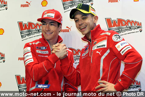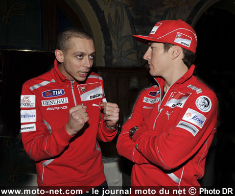 Rossi a également précisé que la collaboration avec Hayden serait totale et qu'il n'y aurait "pas de mur dans le box". Une chose est certaine : tant que la Ducati n°69 terminera derrière celle du n°46, tout devrait bien se passer entre les deux pilotes officiels !