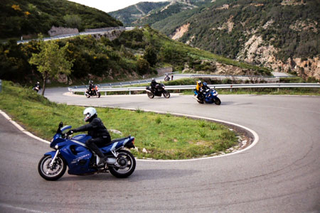 Avril 2003, sur le port de Marseille, nous sommes plus de 70, rassemblés là par le Rider's Association of Triumph (RAT), piaffant d'impatience avant d'embarquer sur le ferry. Le temps d'embarquer les quelques 50 motos, de se répartir dans les cabines, il est l'heure de se retrouver pour le dîner, puis le briefing. Notre base sera à Aritzo, petite ville sympa dans la montagne sarde, au cœur du massif du Gennargentu. A partir d'Aritzo, on rayonnera un peu partout dans l'île, en évitant les grandes villes et les plages à touristes. L'objectif, c'est la montagne et les routes qui tournent !
