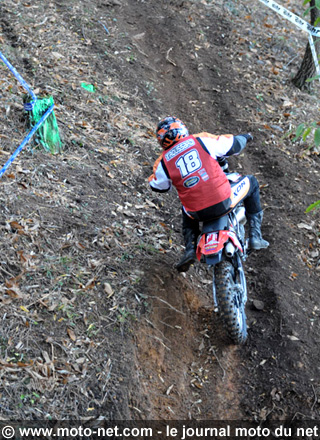 Presque tous les "bons" sont passés lorsque je me présente au départ de la spéciale en ligne de 9 km : un tracé banderolé sur un coteau de l'arène du Pôle mécanique. Superbe parcours très technique, rien d'infranchissable mais plutôt costaud... pour moi en tout cas !