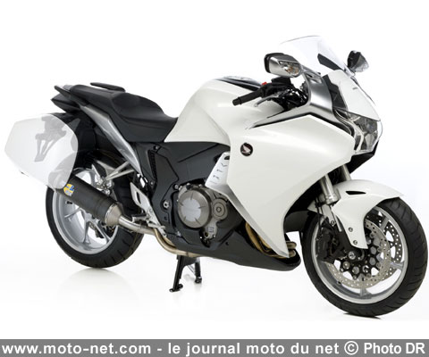 Le manufacturier italien d'échappements LeoVince donne de la voix au V4 de la nouvelle Honda VFR 1200 (lire notre Essai de la VFR 1200F du 2 décembre 2009 et notre Duel VFR 1200 DCT Vs BMW K1300S du 21 juillet 2010 ) grâce à son silencieux SBK Factory EVO II.