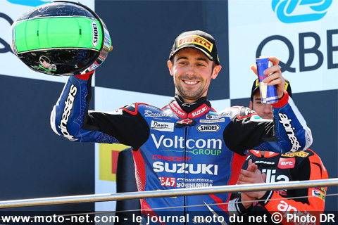 Vainqueur de la première manche australienne cette année aux commandes de la GSX-R, Laverty avait également remporté les deux dernières en 2013 au guidon de la RSV4 . Une performance unique dans la catégorie, que seul un certain Rossi est parvenu à réaliser en MotoGP !