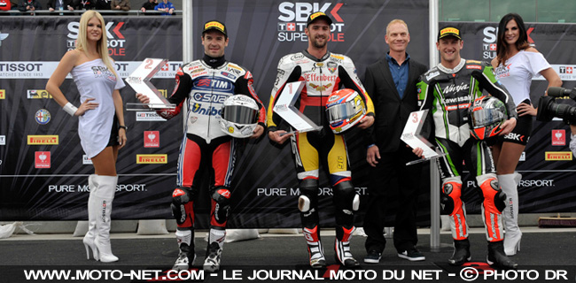 Jonathan Rea postera sa Honda préparée par l'équipe Ten Kate en tête du deuxième rang. Le n°65 devance ainsi la Ducati n°50 de Sylvain Guintoli, et l'Aprilia n°3 officielle de Max Biaggi, deux hommes qui rouleront demain pour la victoire.