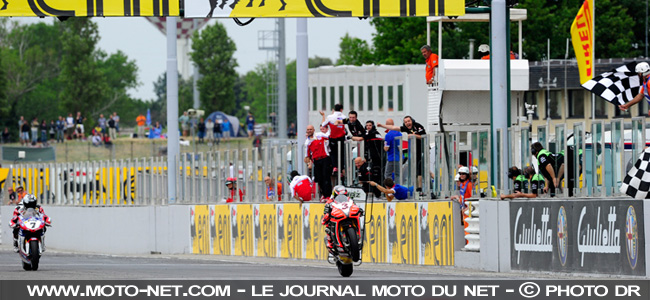 Pris en sandwich par les Ducati Althea, Biaggi se démène mais ne trouve pas la faille sur le rookie ! Il reste six tours à effectuer et Rea est largué depuis longtemps. Soutenu par la foule, et sans pression vis-à-vis du championnat, le champion du Superstock en titre continue de dominer les deux champions de Superbike !